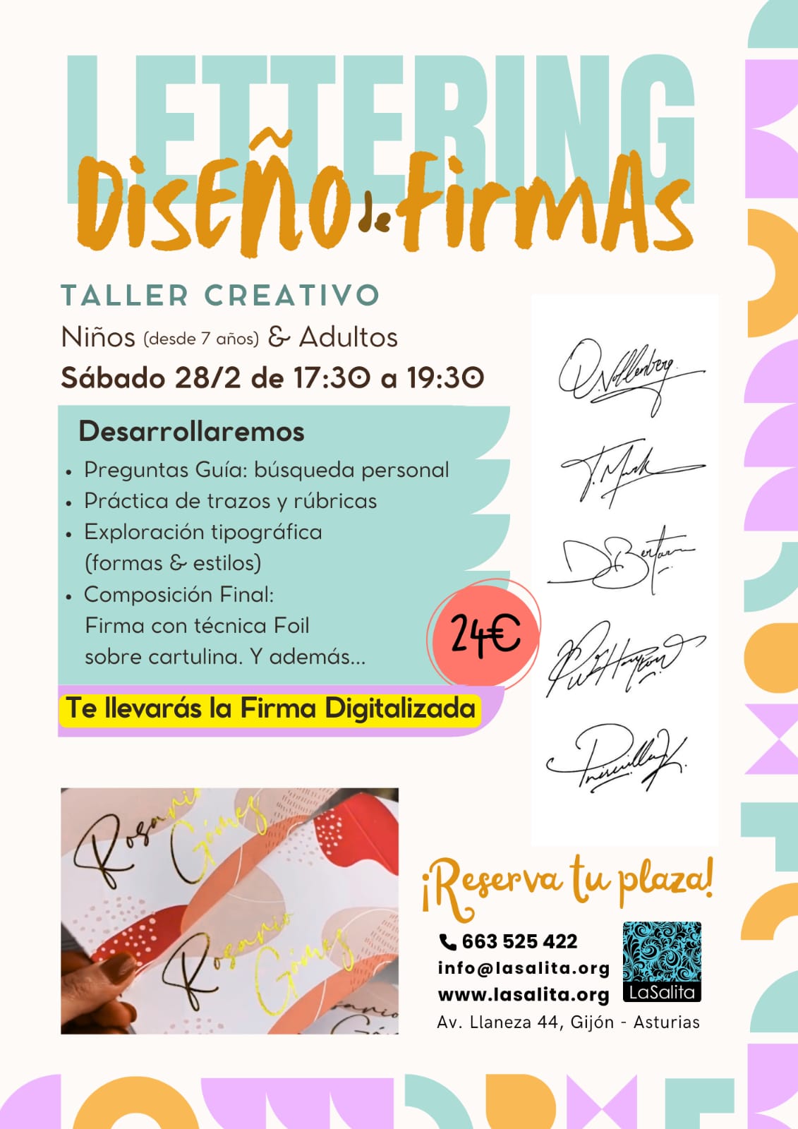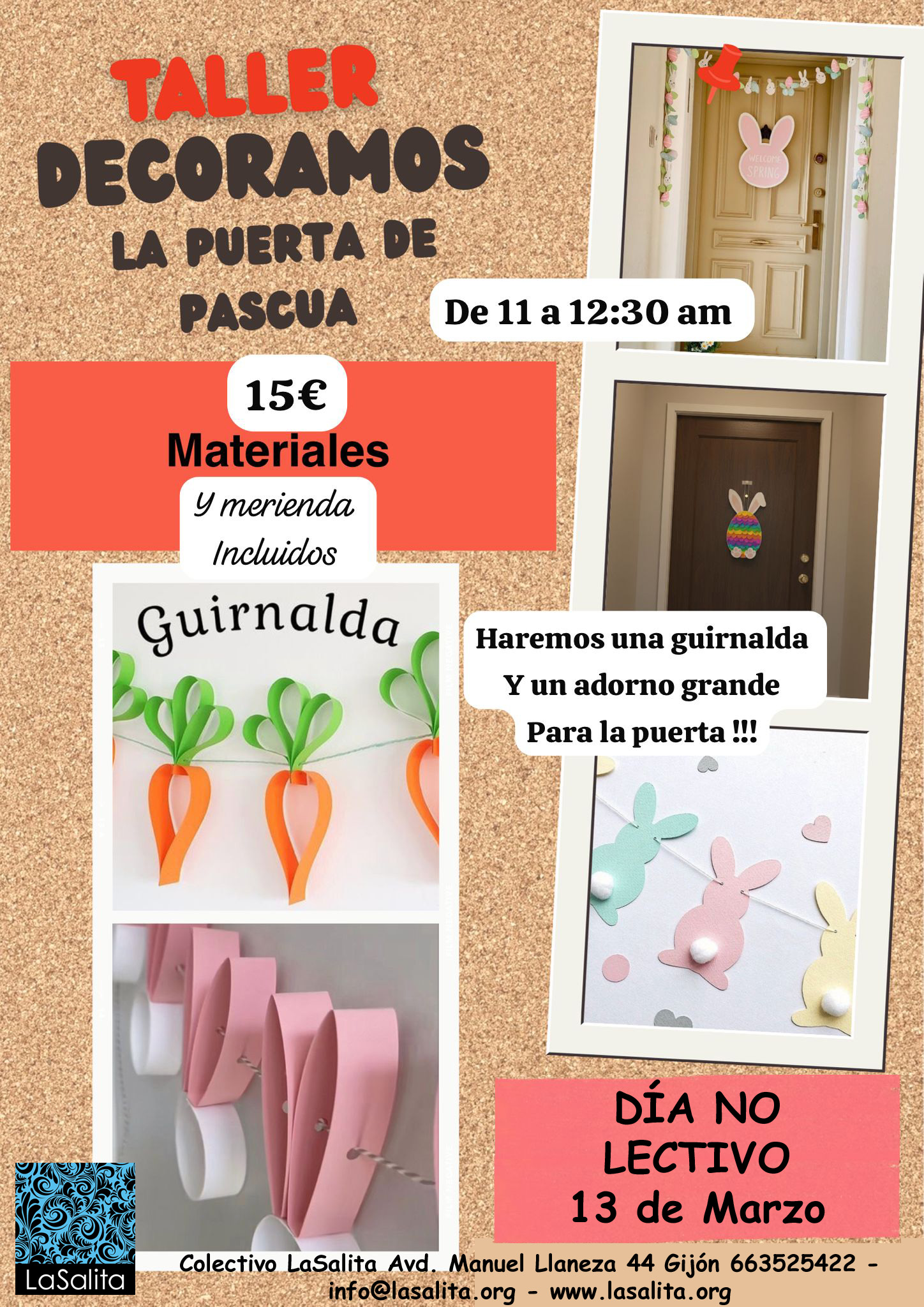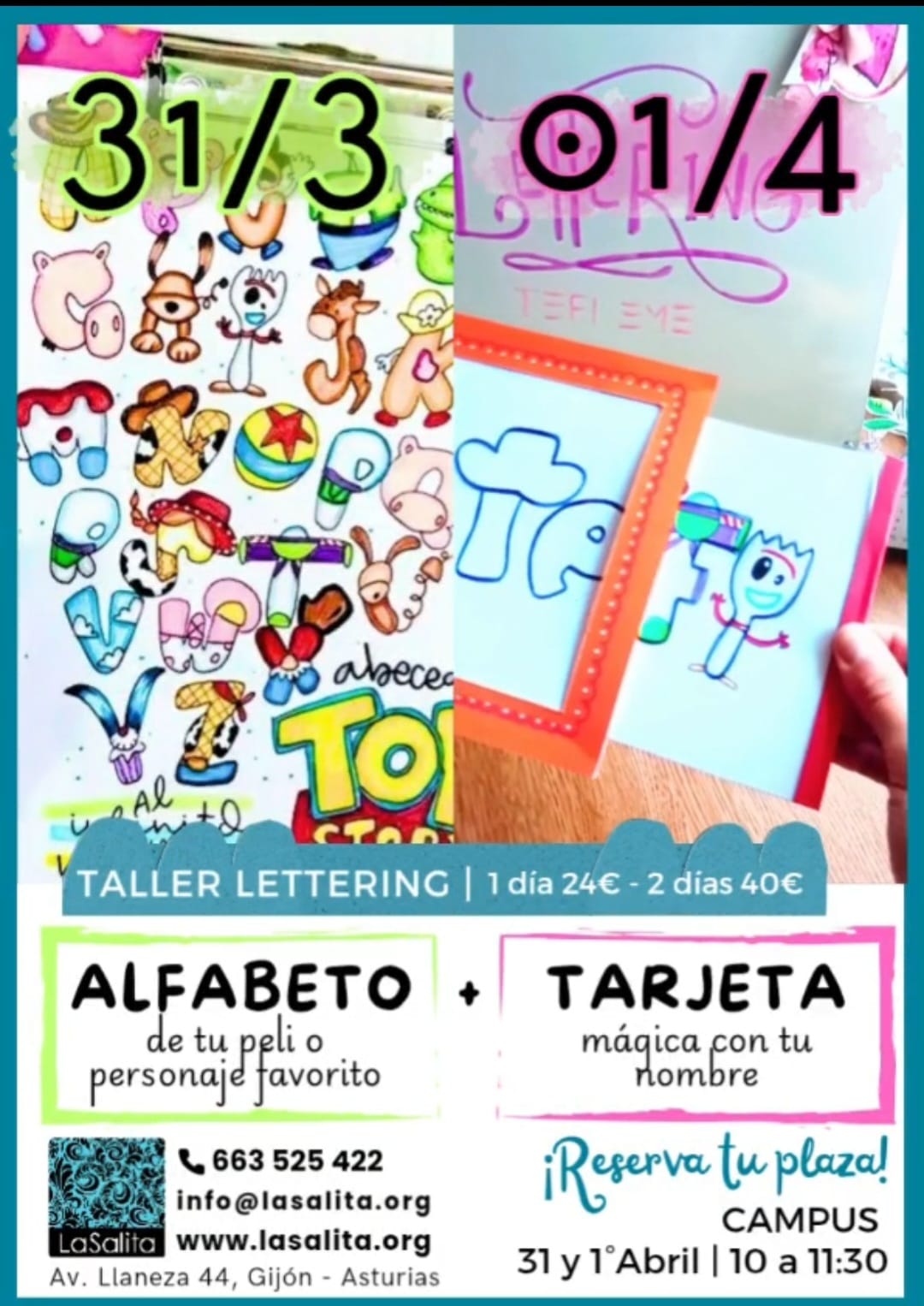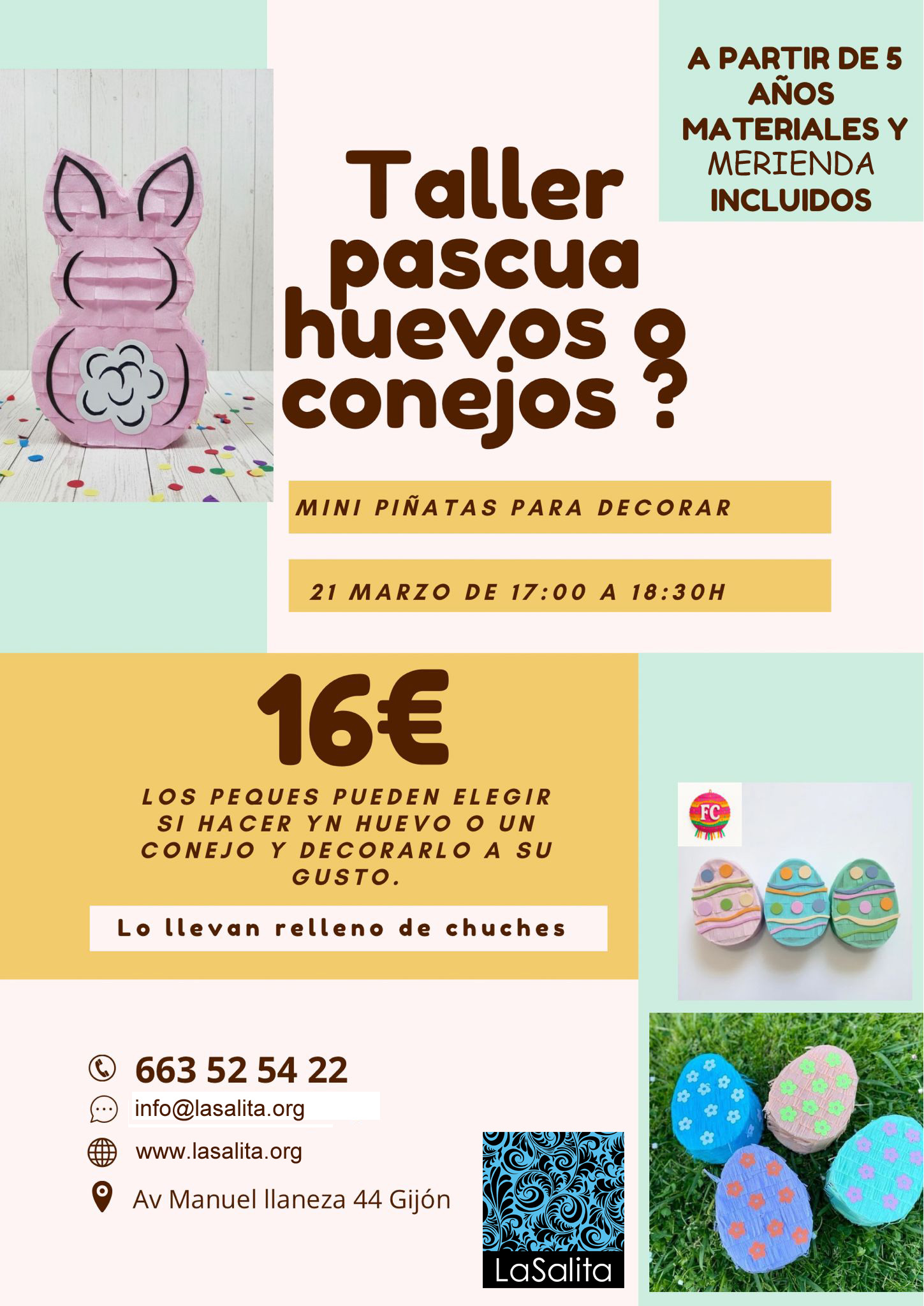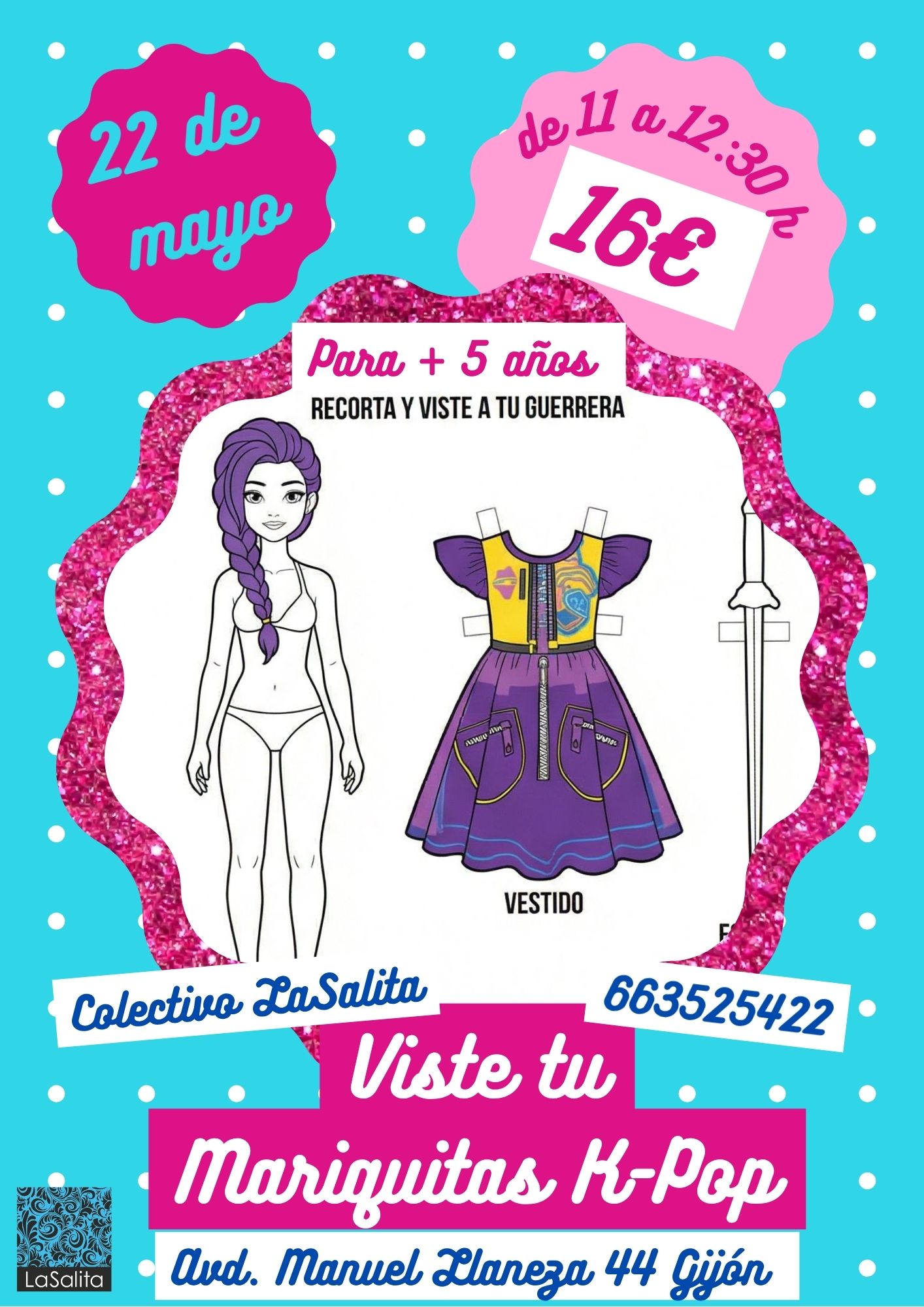 LaSalita es un sala de arte y taller. Está compuesta de dos partes. La primera es la sala de arte, con escaparate cara a público. La segunda parte, es el taller donde realizamos deferentes cursos de arte o artesanía, para niños a partir de 5 años hacia adultos de cualquier edad. Estos cursos están impartidos por Marianna Nieddu (monitora y directora ) y otros por artistas o artesanos que necesitan un espacio, para realizar sus cursos.